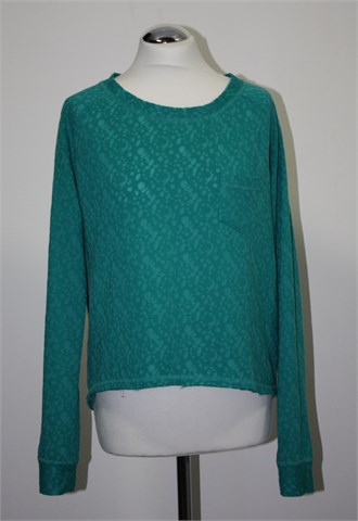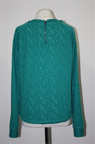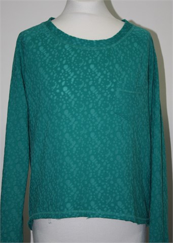 Sublevel majica sa dugim rukavima, zelene boje s uzorkom. Mali džepić na prsima, stražnji cif. Nešto je duža sa stražnje strane (vidjeti mjere). Lagan materijal.