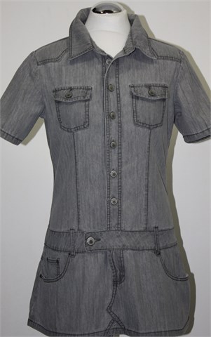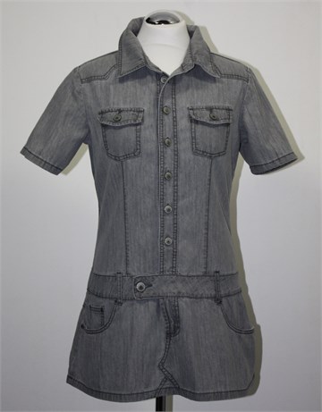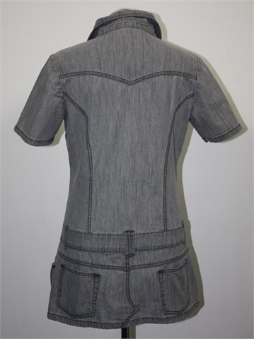 Sublevel tunika od trapera sa kratkim rukavima, svijetlo sive boje. Prednje kopčanje, džepovi na prsima. Pasica za remen. bočni džepovi i stražnji klasični džepovi.