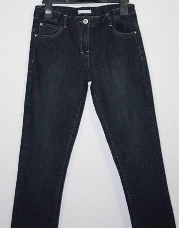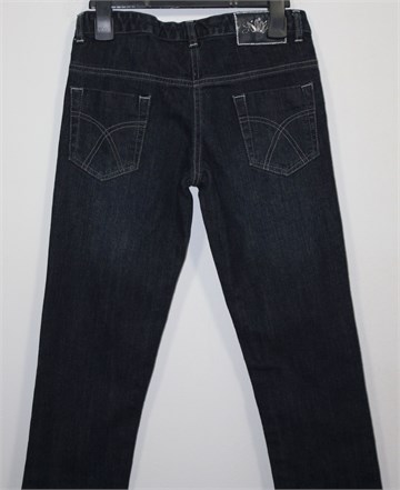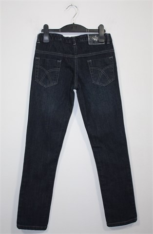 Sugar Club traper hlače tamnije plave boje, nogavice su ravne i uske. Prednji cif i kopčanje, pasica za remen. Prednji i stražnji klasični džepovi. S unutarnje strane pasice regulacija širine (bočne gumice i gumbići za regulaciju) pa je širina prilagodljiva. Blago rastezljive.