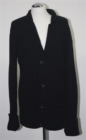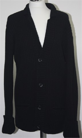 Suit vesta na kopčanje/kardigan, crne boje. Prednji bočni džepovi, rebrasto pletivo. Debela i mucasta, vrlo topla. Rastezljivo pletivo.