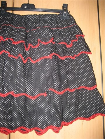 Suknja crne boje, bijele točkice, crveni obrubi