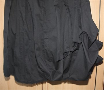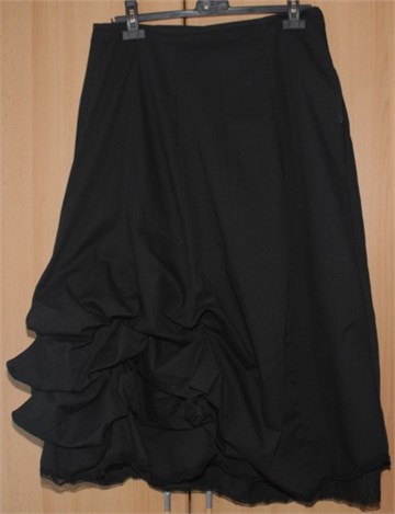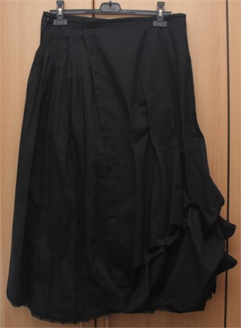 Šivana i unikatna dugačka suknja crne boje, sa bočnim naborima i faldama. Bočni cif i kopčića. Dosta težak materijal sa prekrasnim padom. Na rubu našivena čipkasta trakica.