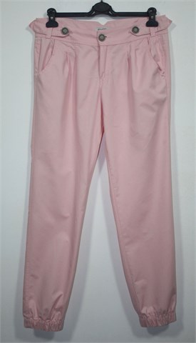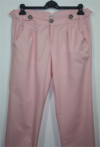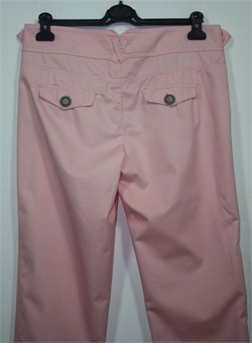 Switch pamučne hlače svijetlo roze boje. Prednji cif i kopčanje, pasica za remen. Prednji bočni, stražnji džepovi sa preklopom i gumbom. Prednji ušitci, nogavice su na dnu stegnute gumicom. Šire u gornjem dijelu (vidjeti mjere). Lagan i mekan pamuk.