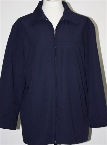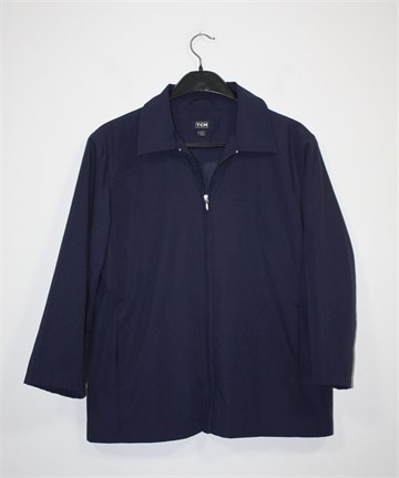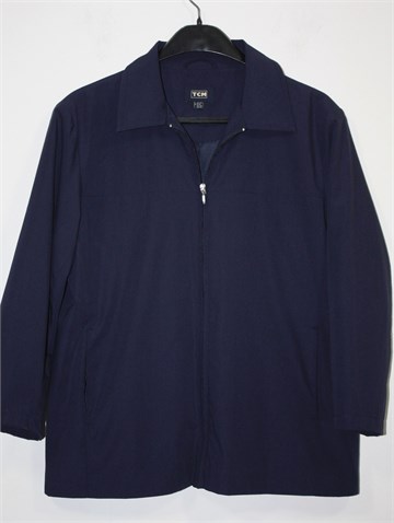 TCM lagana jakna sa poludugim rukavima, tamno plave boje. Prednji bočni džepovi, prednje kopčanje sa cifom. Cijela podstavljena (podstava je šivana na par mjesta), rukavi se mogu nositi i podfrknuti. Blago pojačanje na ramenima (kao mali jastučići). Lagana, idealna za toplije prijelazno vrijeme (proljeće/jesen).