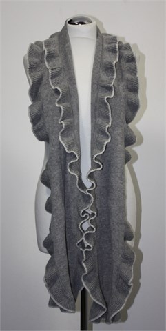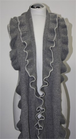 TCM prekasan šal sive boje sa rubovima u bijeloj boji (u rub su uplatene diskretne srebrne niti). Mekan i topli, rastezljiv.