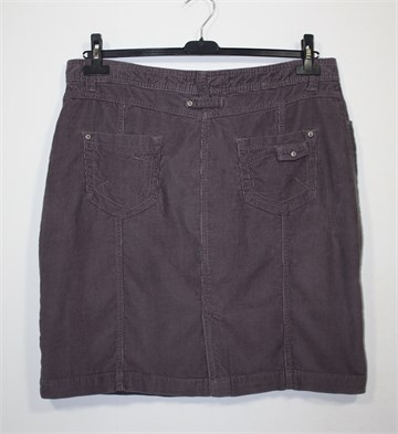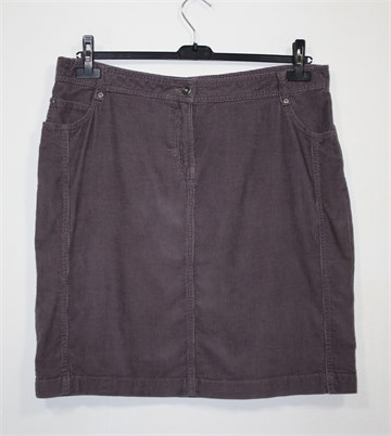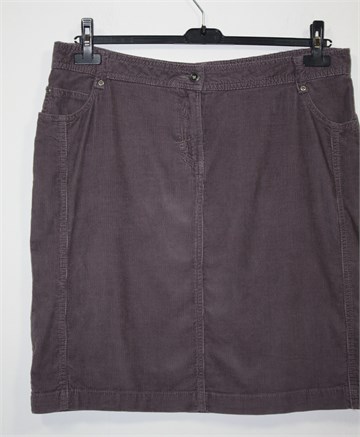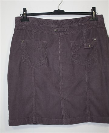 TU suknja od tanjeg i mekanog pamučnog samta, zagasito svijetlo ljubičasto-lila boje. Prednji cif i kopčanje, pasica za remen. Prednji i stražnji džepovi. Mali rasporak sa stražnje strane, blago rastezljiva.