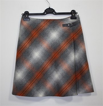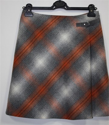 Taifun Collection zimska suknja sivo-narančasto-bijele boje sa uzorkom. Bočni cif, ukrasna kopčica i faldica sa prednje strane. Prekrasan, mekan i mucast materijal - podstavljena.