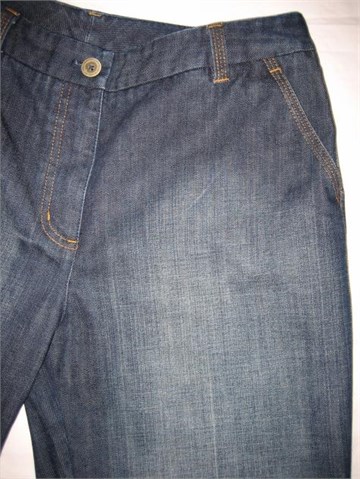 Tamni traper, 98% pamuk 2% spandex, naprijed džepovi, stražnji su samo ukrasni, nenošene, samo oprane