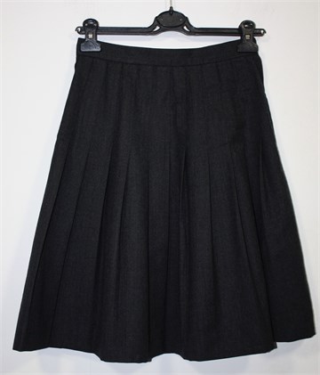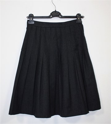 Talbots vunena suknja prošarano tamno sive boje, falde sa prednje i stražnje strane. Bočni cif i gumbić, nema podstavu. Materijal je vuneni štof.