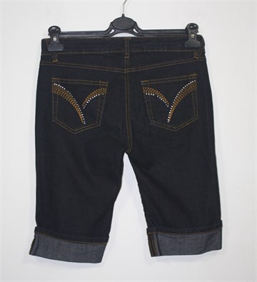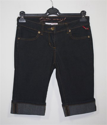 Tally Weijl bermude od trapera, tamno plave boje. Prednji cif i kopčanje, pasica za remen. Prednji i stražnji klasični džepovi (stražnji ukrašeni prošivima od konca i cirkonima - par ih je ispalo ali nije jako vidljivo). Blago rastezljive.