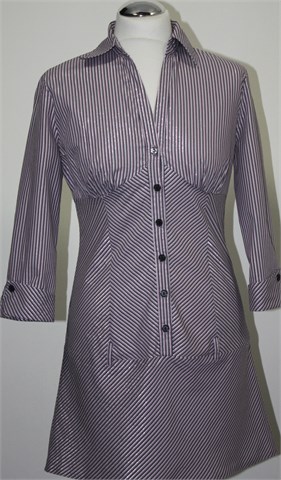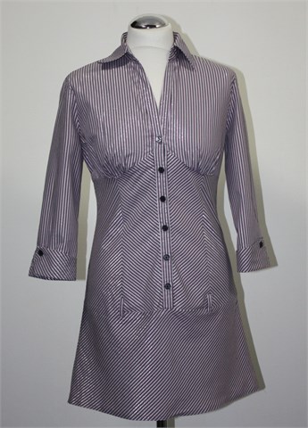 Tally Weijl duža bluza/tunika sa poludugim rukavima, prugasta kombinacija svijetlo ljubičaste, tamno sive, bijele boje i sjajnih srebrnih niti. Prednje kopčanje (do pasice), pasica za remen. Prednji i stražnji ušitci, strukirana. Blago rastezljiva.
