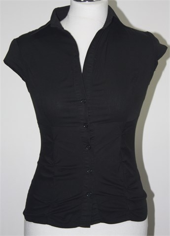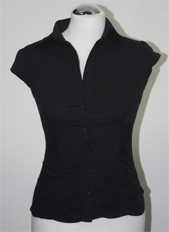 Tally Weijl košulja sa kratkim rukavima, crne boje. Prednje kopčanje i ukrasni ušitci. Strukirana, blago rastezljiva.