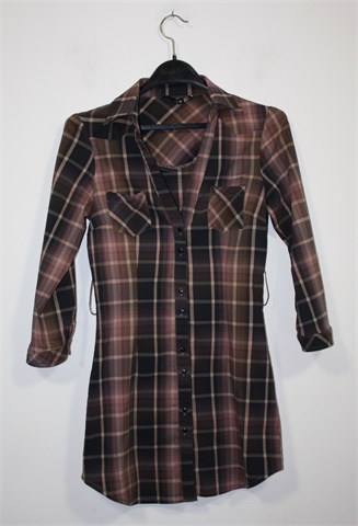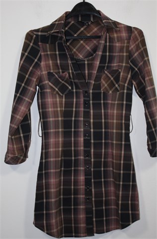 Tally Weijl dugačka košulja/tunika sa poludugim rukavima (mogu se nositi i kao kraći - vanjski gumbić na rukavu i vezica unutar rukava), sa prugasto-kariranim uzorkom (boje i uzorak vidljivi na slikama). Prednje kopčanje, bočne ušice za remen. Džepići na prsima, strukirana. Rastezljiva.
