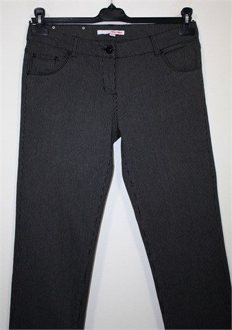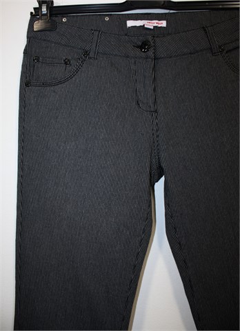 Tally Weijl tanje traper hlače, prugasta kombinacija crne i sive boje. Prednji cif i kopčanje, pasica za remen. Prednji i stražnji klasični džepovi. Rastezljive.