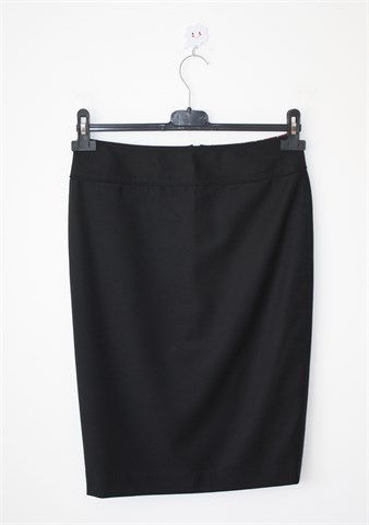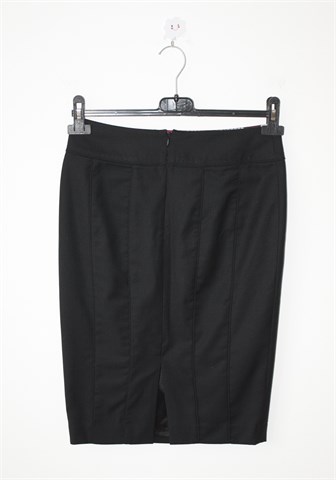 Ted Baker suknja crne boje, diskretan prugasti uzorak na materijalu (vidljivo na slici izbliza). Sa stražnje strane ukrasni prošivi i rasporak. Stražnji cif i kopčica, podstavljena. Vrlo blago rastezljiva.