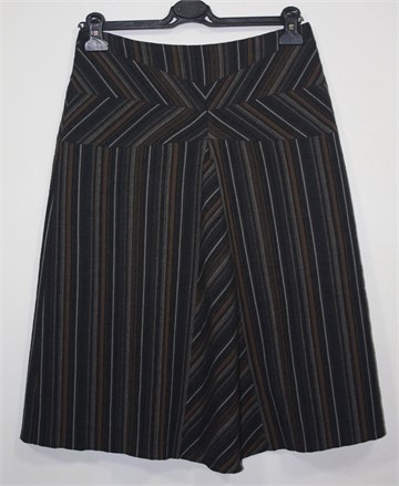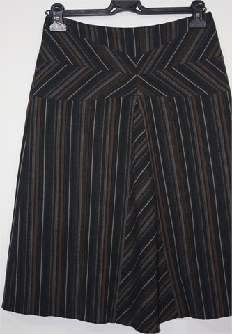 Teo P. dizajnerska suknja, prošarano sivo-smeđe boje (prugasti uzorak - boje kao na slikama). Stražnji cif, podstavljena. Topli ali ne predebeli vunasti materijal.