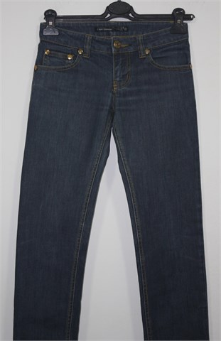 Terranova denim traper hlače, srednje plave boje mjestimično ispranog izgleda. Prednji cif i kopčanje, pasica za remen. Prednji i stražnji klasični džepovi. Blago rastezljive.
