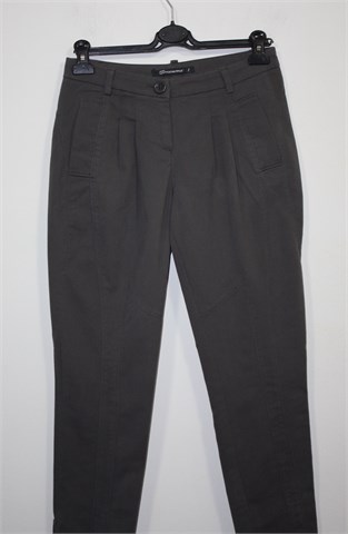 Terranova hlače chino kroja (šire u gornjem dijelu, uže nogavice), antracit sive boje. Prednji cif i kopčanje, uska pasica za remen. Prednji bočni, stražnji džepići sa gumbom. Prednje ukrasne faldice, prošivi na nogavicama. Drukeri na nogavicama (sa stražnje strane, na samom dnu nogavica). Blago rastezljive.