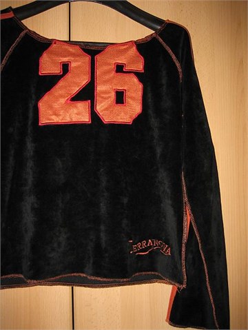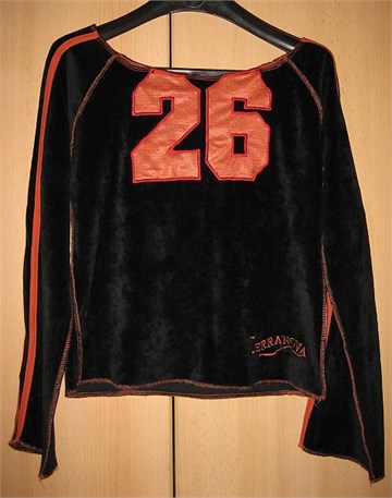 Majica od pliša, dugi rukavi. Ukrasi od narančastog konca, natpis na prednjoj strani. Jako mekana i rastezljiva.