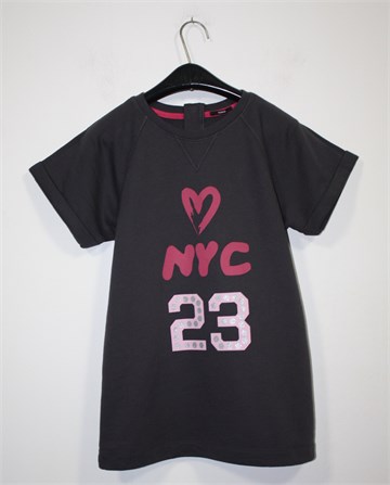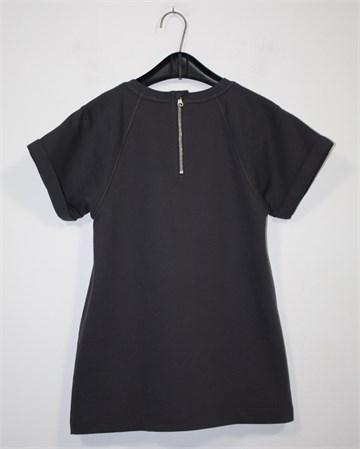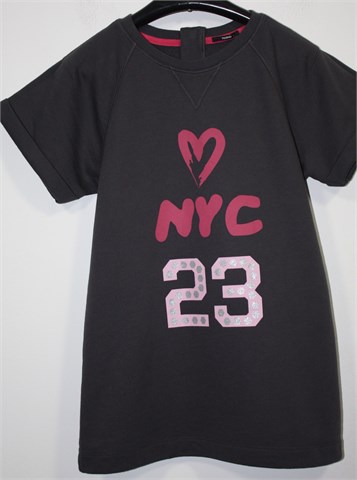Tezenis duža majica sa kratkim rukavima, sive boje sa printom (kao na slici). Stražnji cif, iznutra mucasta (kao toplije trenirke). Deblja i blago rastezljiva.