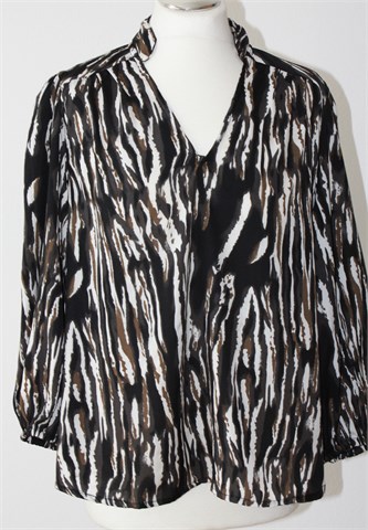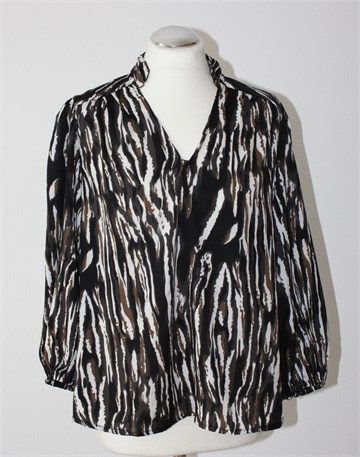 Think Positive bluza sa poludugim rukavima, prošarani uzorak (boje i uzorak kao na slikama - boje su siva, bijela, crna i smeđa). Rukavi su širi, na dnu stegnuti gumicom. Lagana i prozračna.