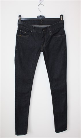 Tiger of Sweden traper hlače tamno plave boje (oznaka modela - Slender). Prednji cif i kopčanje, pasica za remen. Prednji i stražnji džepovi, rastezljive. Plitki model (vidjeti mjere).