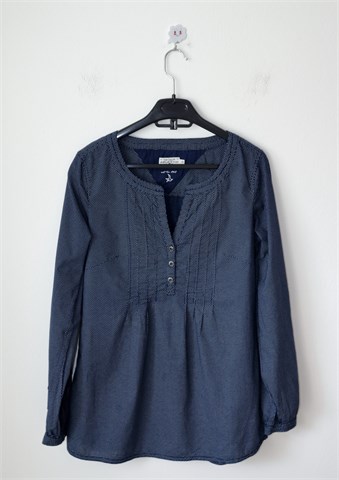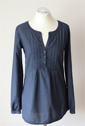Tom Tailor bluza sa dugim rukavima, tamno plave boje sa bijelim točkicama. Nije rastezljiva.