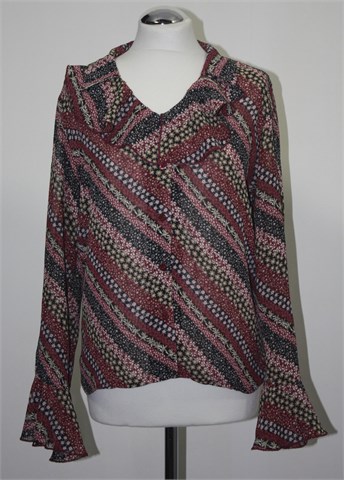Tom Tailor košulja sa šarenim cvjetnim uzorkom. Prednje klasično kopčanje, volančići na ovratniku i na dnu rukava. Vrlo lagan i prozračan materijal. Stražnji ušitci, blago strukirana.