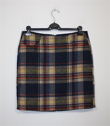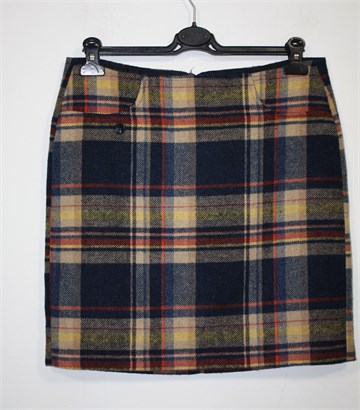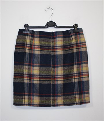 Tom Tailor suknja od debljeg štofastog materijala, plave boje s uzorkom (kao na slikama). Stražnji cif i gumbić, imitacija džepova sa prednje strane. Podstavljena (na šavu je podstava malo rastegnuta), rub suknje se mrvicu odšio (bez problema se uhvati koncem).