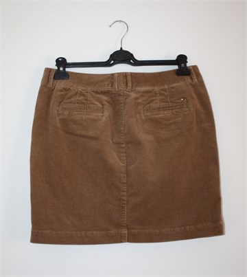 Tommy Hilfiger suknja od samta, svijetlo smeđe/bež boje. Prednji cif i kopčanje, pasica za remen. Prednji bočni, stražnji skriveni džepići (zašiveni). Mekan i rastezljiv samt.