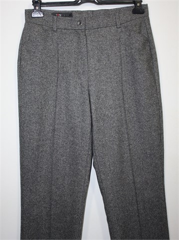 Toni dress City hlače prošarano sive boje (sitno špricane u crno-bijeloj kombinaciji pa djeluju sivo). Prednj cif i kopčanje, pasica za remen. Prednji džepići i jedan stražnji ukrasni. Mekani štofasti materijal, djelomično podstavljene sa prednje strane. Klasični model, dublji kroj (vidjeti mjere).