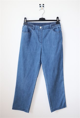 Toni fashion ljetne traper hlače sa širim nogavicama. U struku gumica (vidjeti mjere) i pasica za remen. Prednji i stražnji džepovi, vrlo blago rastezljive. Model Relaxed by Toni.