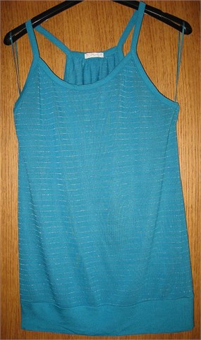 Sastav: 97% viskozni pamuk 3% metalno pletivo Tunika bez rukava. Na dnu malo sužena. Pruge su srebrne boje. Lagana i rastezljiva. Veličina majice je 42 ali pristaje i manjim brojevima.