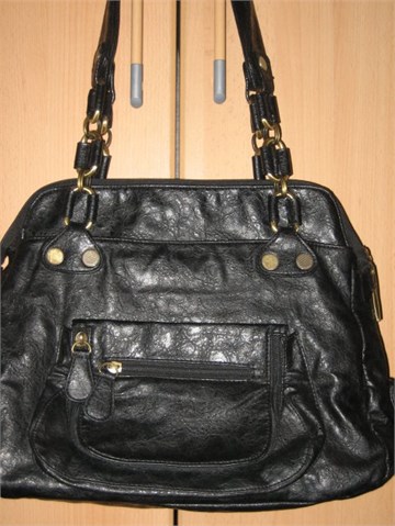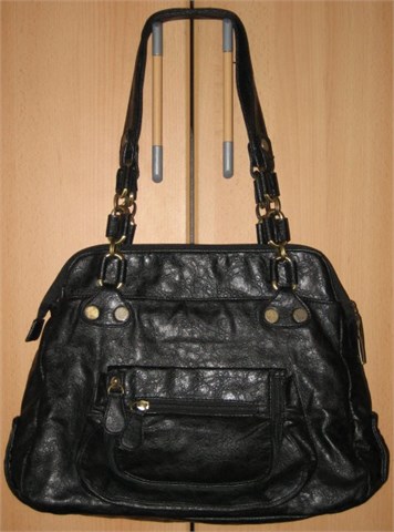 Prostrana torba sa puno vanjskih i unutarnjih pretinaca koji se zatvaraju pomoću cifova. Glavni pretinac također na zatvaranje pomoću cifa. Ukrasi u zlatnoj boji.