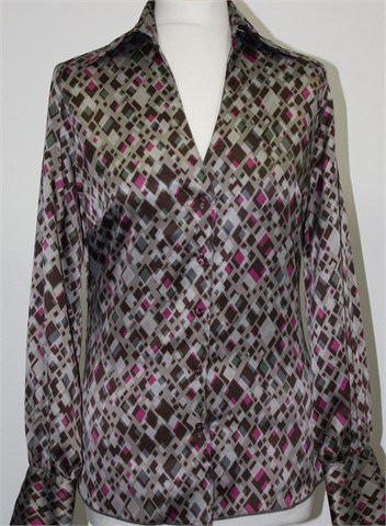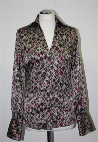 Trussardi Jeans košulja sa dugim rukavima i retro printom (boje i uzorci kao na slikama). Prednje kopčanje, strukirana. Blago rastezljiva, materijal je blago sjajan.
