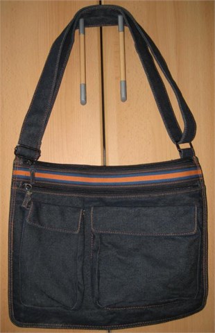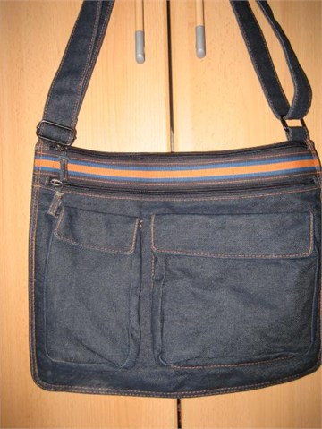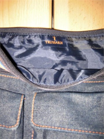 Trussardi torba od tamnog trapera, modernog "poštarskog" stila. Ručke su prilagodljive dužine, prema potrebi mogu se skratiti da se torbica nosi preko ramena ili se mogu otpustiti pa se torbica može nositi oko tijela.