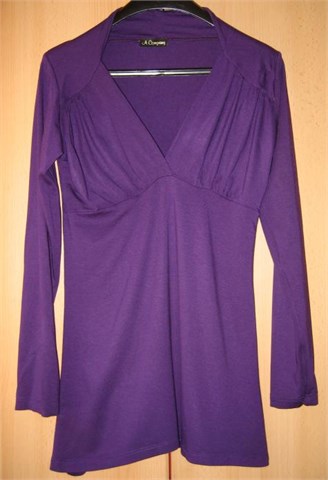 Mješavina pamuka i elastina. Prilično rastezljiva i vrlo lagana. Neobičan otvor, rezana ispod grudi. Dugi rukavi.