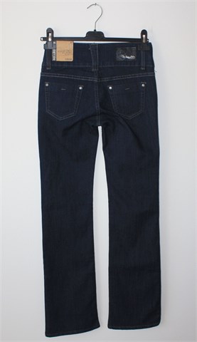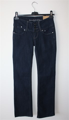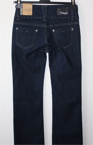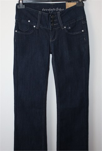 Two Days Later traper hlače, tamnije plave boje. Prednji cif i kopčanje, široka pasica za remen. Prednji i stražnji džepovi. Blago rastezljive.
