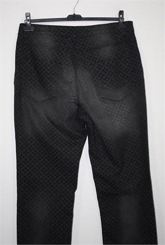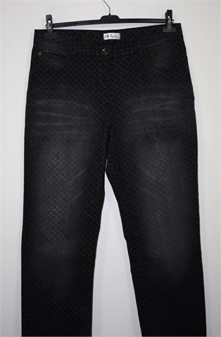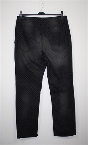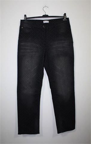 Ulla Popken traper hlače sive boje sa printom (kao na slici), mjestimično ispranog izgleda (tvornički). Prednji cif i kopčanje, pasica za remen. Prednji i stražnji džepovi. Tanji i rastezljiv traper.