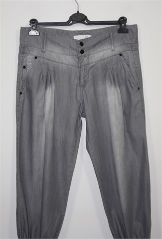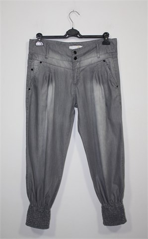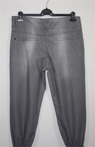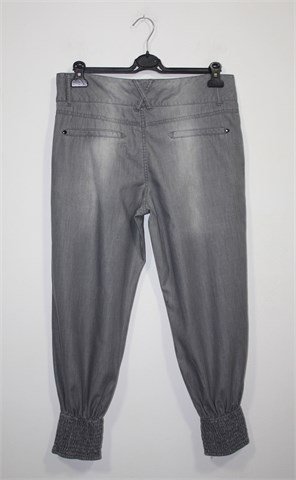 Units poluduge traper hlače sive boje, mekan i tanak traper. Prednji cif i kopčanje, pasica za remen. Prednji bočni, stražnji ukrasni džepovi. Prednji ukrasni proštepi, nogavice su na dnu stegnute sa gumicama. Blago rastezljive. Super model, odlično stoje :)