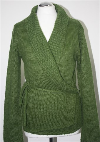 Urban Behaviour vesta sa preklopom i vezanjem, lijepe zelene boje. Toplo, rastezljivo i mucasto pletivo.