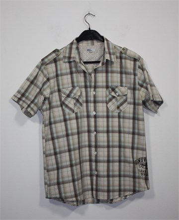 Urban Republic košulja sa kratkim rukavima, svijetlo bež boje sa uzorkom (boje i uzorak kao na slici). Prednje kopčanje, na prsima džepići sa preklopom i gumbom. Mali bočni print.