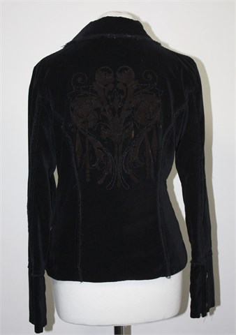 Urban Republic sako/jakna od pliša, crne boje. Prednje kopčanje, bočni džepovi. Na leđima aplikacije od konca, metalni ukrasni gumbi. Podstavljena, strukirana. Rubovi su tvornički ocufani.