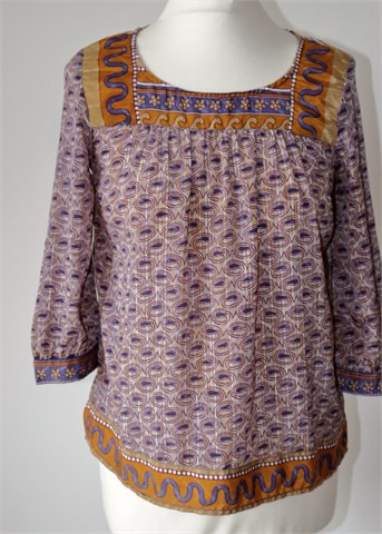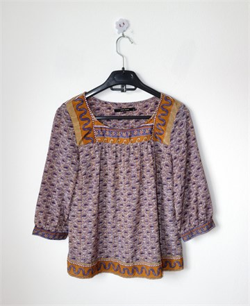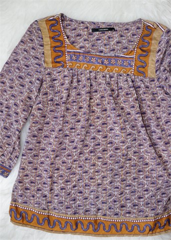 Vero Moda bluza sa poludugim rukavima. Šareni print i pruge (vidljivo na slikama), gumbić na kraju svakog rukava. Tanka i lagana, nije rastezljiva.