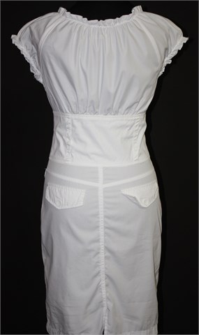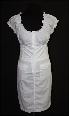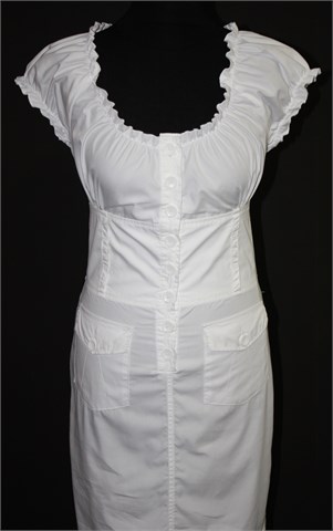 Vero Moda haljina sa kratkim rukavima, bijele boje. Prednje kopčanje, u struku pasica za remen. Prednji džepovi sa preklopom i gumbom, stražnji ukrasni.