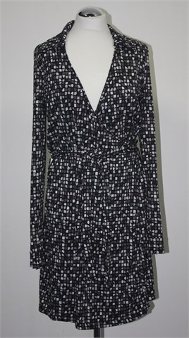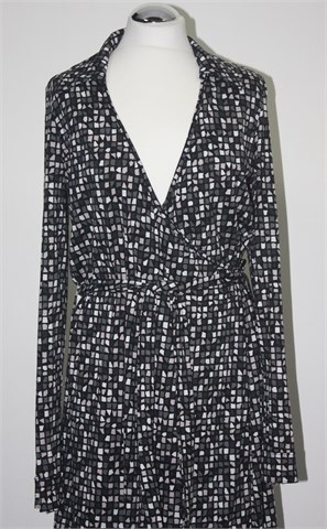 Prekrasna Vero Moda haljina sa dugim rukavima, crne boje sa printom. Sa prednje strane preklop (unutarnji i vanjski gumbić) i vezanje (pasica za remen sa pripadajućom trakom za vezanje). Mekan i rastezljiv materijal.