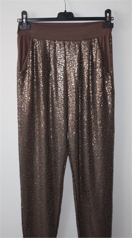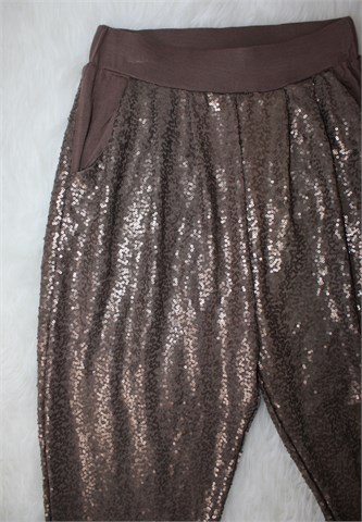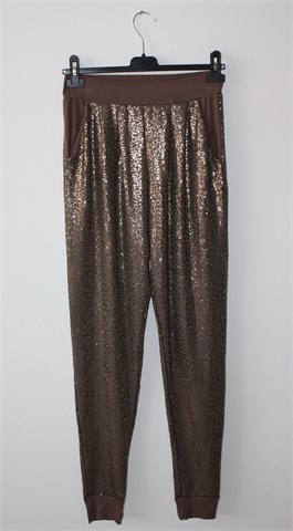 Vero Moda casual hlače sivo-smeđe boje sa našivenim sitnim okruglim šljokicama u istoj boji. Guma u struku (prilagodljiva širina - vidjeti mjere), bočni džepovi. Blago stegnute na dnu nogavica. Rastezljive, dublji chino model (vidjeti mjere).