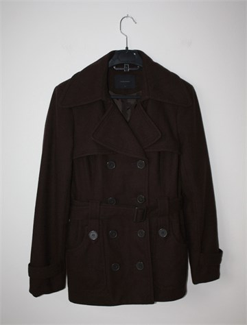Vero Moda kaput tamno smeđe boje. Prednje kopčanje, prednji bočni džepovi. U struku pasica za remen sa pripadajućim remenom od istog materijala. Blagi jastučići u ramenima, podstavljen.