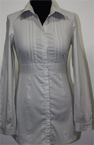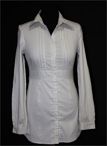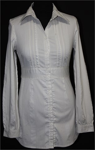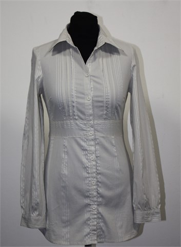 Vero Moda košulja/tunika sa dugim rukavima, prljavo bijele boje sa prugama (sivim i blago sjajnim bijelim prugama od konca). Prednje kopčanje, strukirana. Rastezljiva.