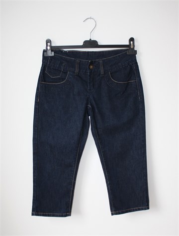 Vero moda poluduge traper hlače, tamno plave boje. Prednji cif i kopčanje, pasica za remen. Prednji i stražnji džepovi, blago rastezljive.